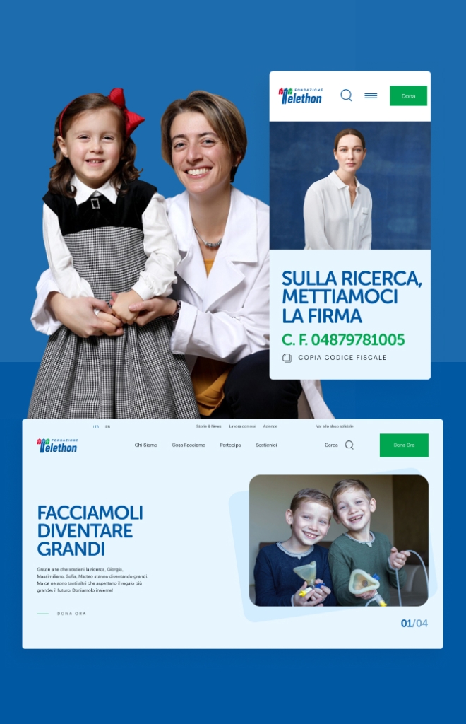 L’obiettivo principale è stato razionalizzare una vasta gamma di contenuti per diversi target. Il sito ora offre percorsi di navigazione personalizzati e contenuti correlati per i principali visitatori come ricercatori, pazienti, donatori, volontari, scuole e aziende. Il cuore tecnologico ottimizza i caricamenti e velocizza l’esperienza utente, mentre una griglia visiva moderna e accattivante ha aiutato ad enfatizzare l’immagine del brand per consentire un racconto unico ed emozionale.